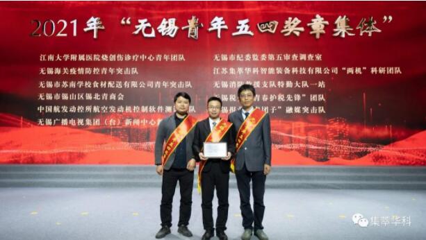 4月28日,在共青團(tuán)無(wú)錫市委員會(huì)舉辦的“學(xué)黨史、強(qiáng)信念、跟黨走”主題團(tuán)日活動(dòng)中,江蘇集萃華科智能裝備科技有限公司“兩機(jī)”科研團(tuán)隊(duì)獲評(píng)2021年度“無(wú)錫青年五四獎(jiǎng)?wù)隆睒s譽(yù)集體。