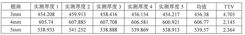 翹曲為3mm、4mm、5mm,吸真空后五點(diǎn)數(shù)據(jù)測(cè)量如表所示,可以完全吸附,無異常,滿足驗(yàn)收條件
