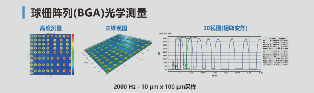 Zeus支持一系列高精度傳感器技術(shù)(激光三角傳感器,點(diǎn)/面共聚焦傳感器),對(duì)于速度要求特別高的檢測(cè)需求,我們有高精度光譜共聚焦傳感器可供選擇;對(duì)于要求最高極限分辨能力的測(cè)量要求,應(yīng)用圖像共聚焦面?zhèn)鞲衅鲃t能夠提供最高測(cè)量精度時(shí)保證測(cè)量速度;Zeus搭載的XY軸運(yùn)動(dòng)平臺(tái)可從50mm至400mm任意搭配選擇并提供客制化服務(wù),可選用大理石底座平臺(tái),一方面最大高度測(cè)量范圍可達(dá)4mm,另一方面最大高度分辨率可達(dá)1um,這使得Zeus可輕松面對(duì)各種測(cè)量任務(wù),傳感器最高可達(dá)36萬測(cè)點(diǎn)/亞微秒及分辨率。