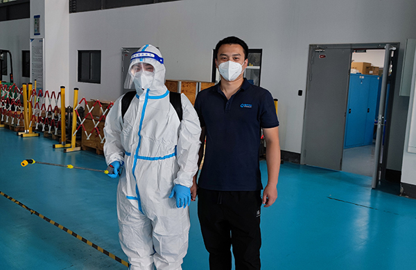 疫情要防住、經(jīng)濟(jì)要穩(wěn)住、發(fā)展要安全。疫情期間進(jìn)口設(shè)備入關(guān)及運輸要求嚴(yán)格,7月中旬,滯留上海海關(guān)三個月的兩臺進(jìn)口設(shè)備終于獲批入錫。綜合管理部徐虞立和車間主任狄忠與地方部門充分溝通明確要求,制定運輸計劃,并準(zhǔn)備了防疫服、行軍床、空調(diào)被和隔離期間的餐飲、檢測、消殺等條件。兩機(jī)事業(yè)部劉如山、高濤濤第一時間申請承擔(dān)現(xiàn)場消殺工作,并做好了在車間吃住、階段性隔離的準(zhǔn)備。經(jīng)過充分工作準(zhǔn)備與積極配合,整體設(shè)備7月19日上午順利完成高速接車、卸車、消殺和核酸采樣,當(dāng)晚完成核酸檢測、確認(rèn)結(jié)果安全,并提前解除了對車間人員的隔離封閉,設(shè)備的順利到場也為下半年度生產(chǎn)沖刺提供重要保障。