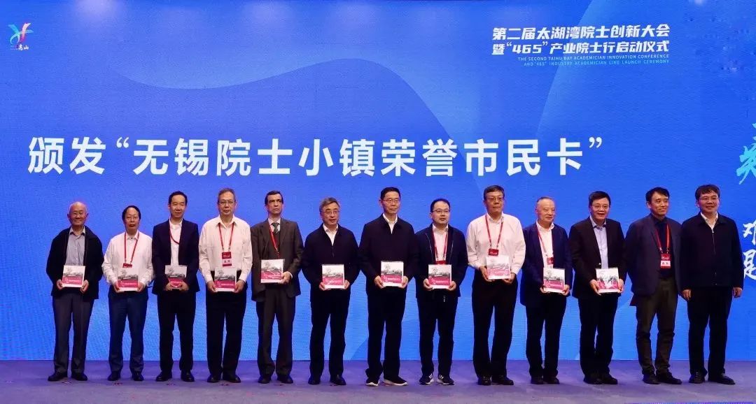 ▲會(huì)上,無(wú)錫院士小鎮(zhèn)鎮(zhèn)長(zhǎng)丁漢院士為院士頒發(fā)“無(wú)錫院士小鎮(zhèn)榮譽(yù)市民卡”。至此,小鎮(zhèn)“榮譽(yù)市民”已達(dá)73名。